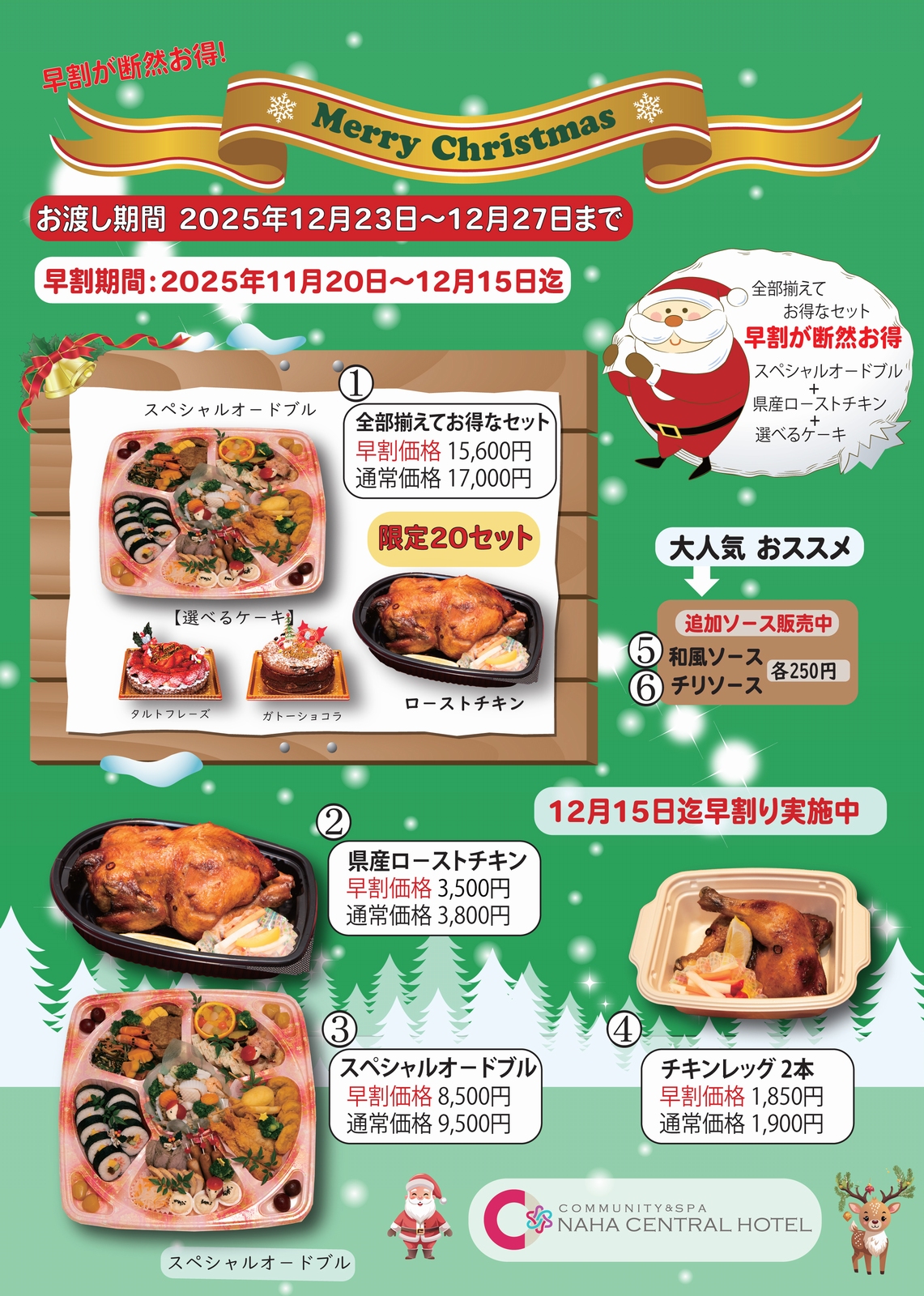 ■ 県産ローストチキン 早割価格 ¥3,500 (通常価格 ¥3,800)