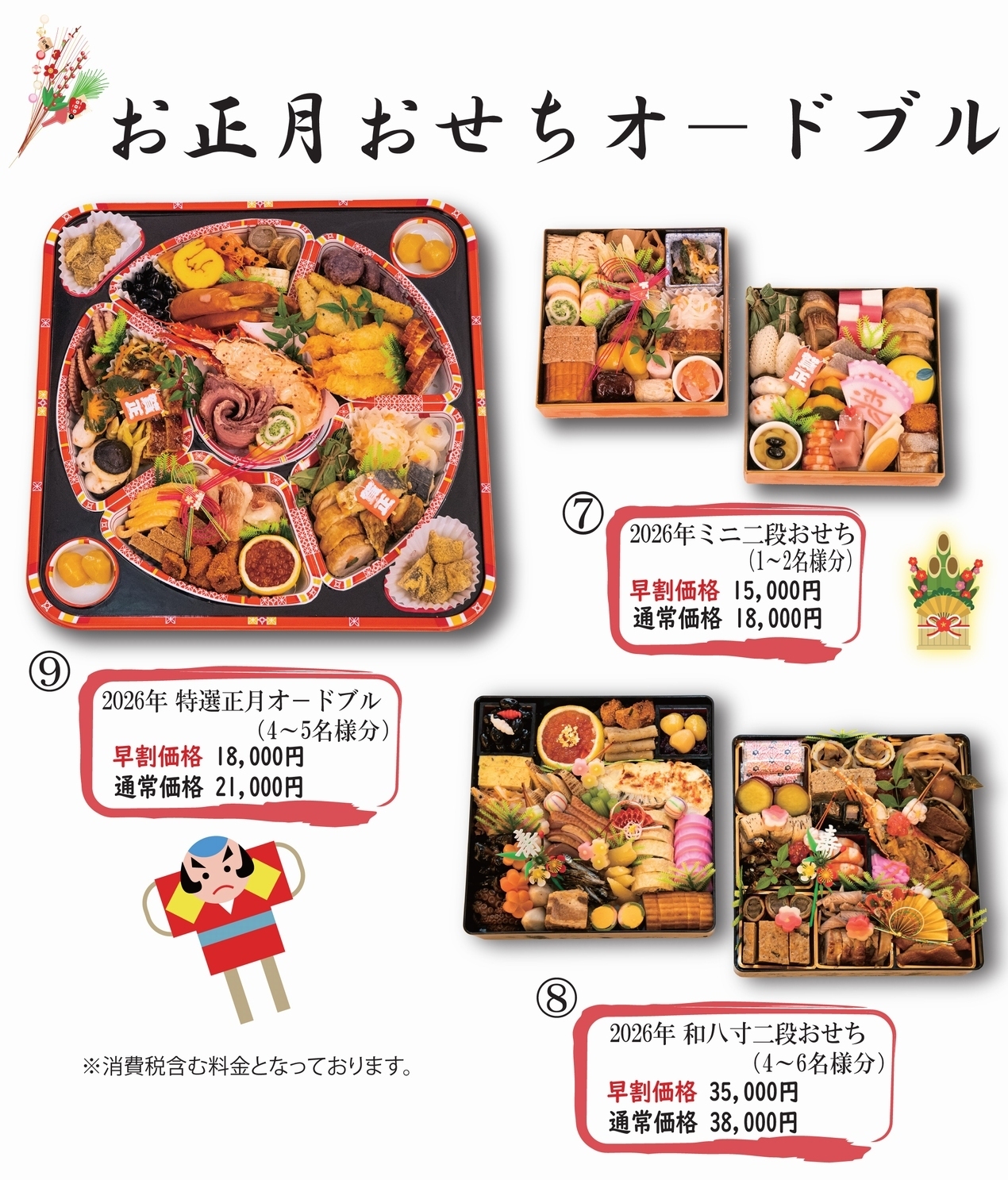 新春の慶びを目と舌で味わう、ホテル特製「お正月おせち&オードブル」。 多彩な味と贅の彩りは、おもてなしにも最適です。 販売数限定の為、お早めのご予約をおすすめい…